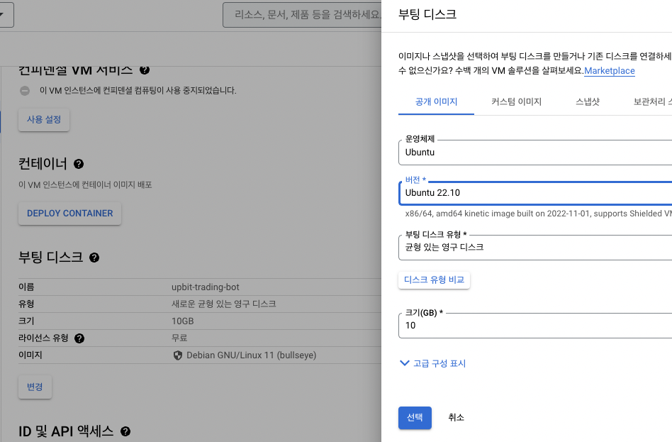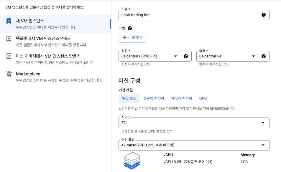 리젼, 시리즈, 머신유형은 구글 클라우드 무료 등급에 맞게 선택하였다.