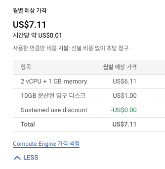 다 선택하게 되면 월별 예상 가격이 나오는데