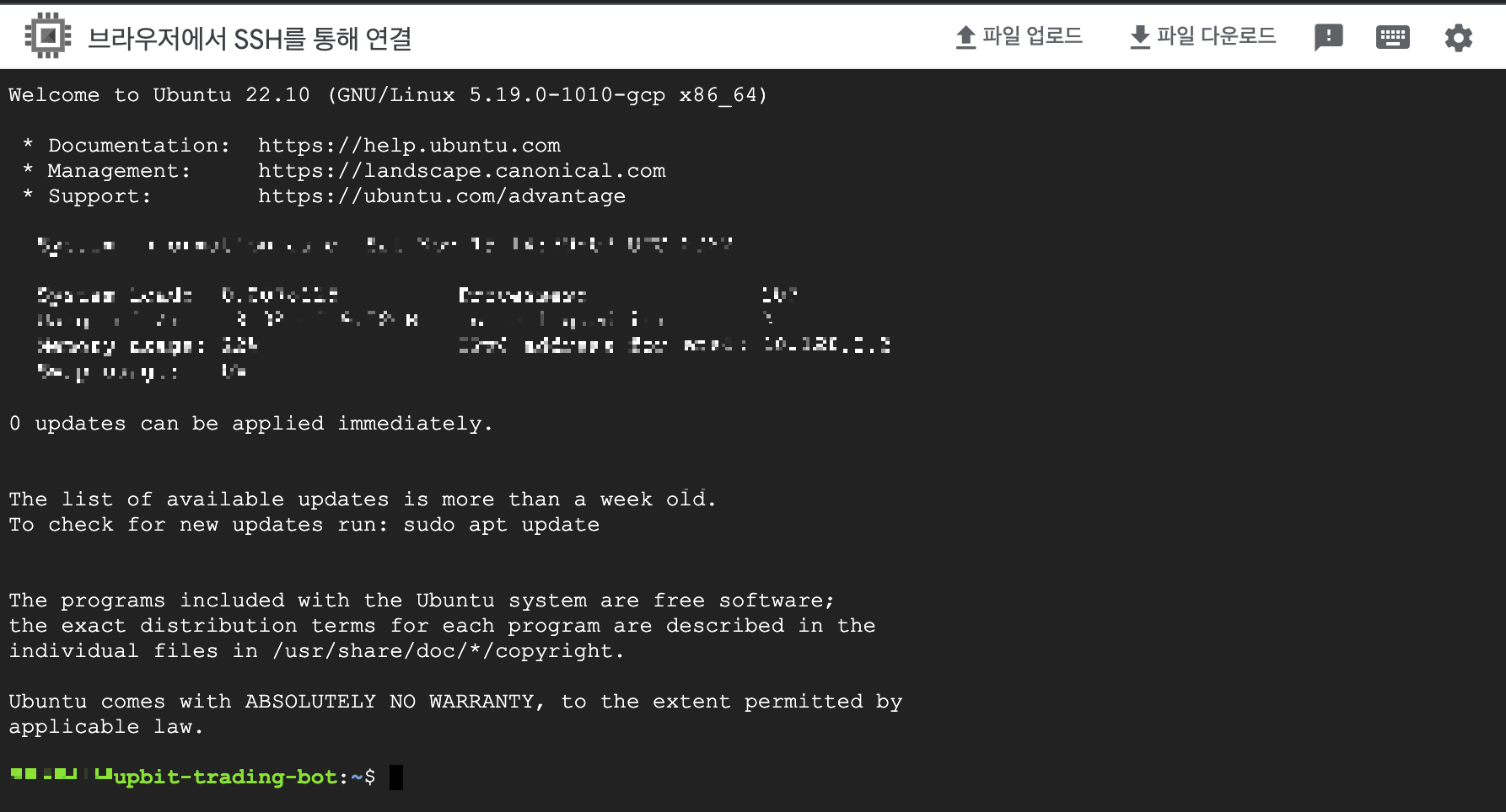 위 이미지에서 SSH를 클릭하면 연결이 되고 아래 창이 나타나고