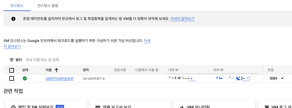 생성을 완료하면 리스트에 내가만든 인스턴스가 나온다.